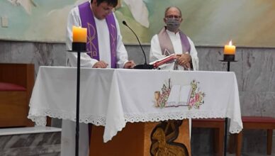 Nesta quinta-feira,17, o Pároco Júlio César, que passa por recuperação após um longo período internado, realizou sua primeira missa após a alta hospitalar,