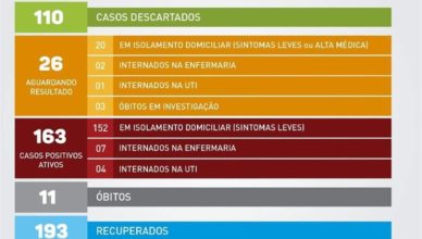 A Secretaria de Saúde informa que neste sábado (27) acrescentou 02 pessoas POSITIVAS ao quadro de acompanhamento, por meio de testes rápidos realizados