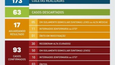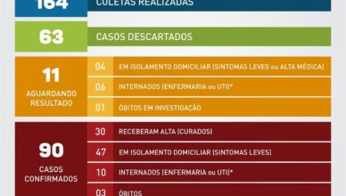 A Secretaria de Saúde informa que nesta terça-feira (12) acrescentou 15 casos CONFIRMADOS ao quadro. Cinco deles foram obtidos a partir dos testes