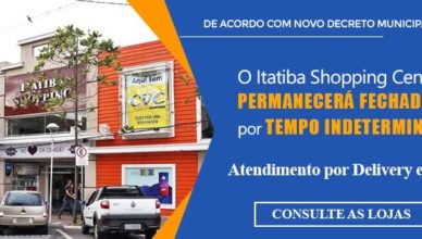De acordo com o novo Decreto Municipal, o Itatiba Shopping Center permanecerá FECHADO para a população por tempo Indeterminado. Algumas lojas estarão atendendo
