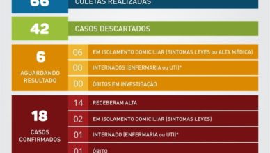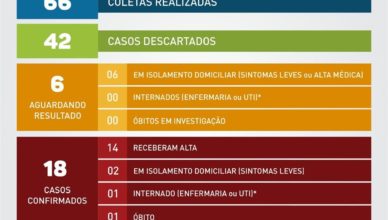 A Secretaria de Saúde informa que nesta segunda (20) não existiram novas coletas para o Instituto Adolfo Lutz nem de clínicas particulares. Vieram