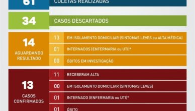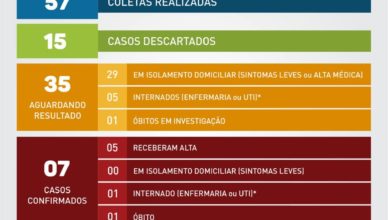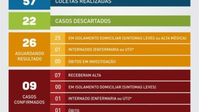 Resultados de hoje do Instituto Adolfo Lutz: 02 negativos, incluindo o óbito ocorrido ontem. Resultados de testes rápidos da prefeitura: 05 negativos. Nestes