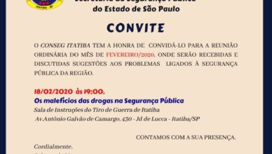 Reunião do Conseg Itatiba fevereiro 18, 2020admin Será nesta terça-feira, (18), às 19h na sala de instruções do Tiro de Guerra de Itatiba, sito à av. Antonio Galvão de Camargo,, [...]