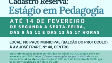 Para cadastro reserva, estão abertas as inscrições para estágio de Pedagogia na rede municipal de ensino da Prefeitura de Morungaba. As inscrições podem