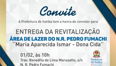 ENTREGA DA REVITALIZAÇÃO DA ÁREA DE LAZER “MARIA APARECIDA ISMAR – DONA CIDA” A Prefeitura de Itatiba convida para a cerimônia de entrega da Revitalização