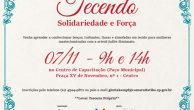 Na próxima quinta-feira (7), no Centro de Capacitação, no Paço Municipal, ocorrerá a oficina “Tecendo Solidariedade e Força”. Na ocasião, voluntárias se reunirão