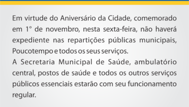 Recebemos da Prefeitura de Itatiba: Em virtude do Aniversário da Cidade, comemorado em 1° de novembro, nesta sexta-feira, não haverá expediente nas repartições