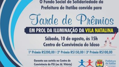 Tarde de Prêmios agosto 2, 2019admin O Fundo Social de Solidariedade de Itatiba realizará no próximo sábado, dia 10, a Tarde de Prêmios. O evento será realizado no Salão [...]