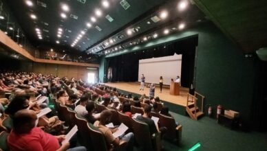 Após reunião no teatro Ralino Zambotto que aconteceu neste domingo (13), interessados fazem vestibular nesta segunda (14) Cerca de 450 pessoas compareceram neste