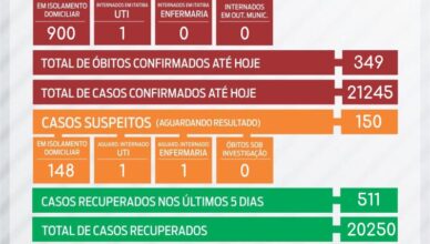O boletim desta quarta-feira (02/03) registra 196 casos confirmados de Covid-19 nos últimos cinco dias, após a realização de 275 testes. A Prefeitura