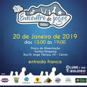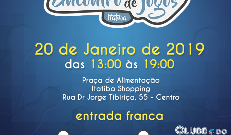 16º Edição do Encontro de Jogos de Itatiba janeiro 10, 2019admin Anote na Agenda: dia 20 de Janeiro , das 13h às 19h, no Itatiba Shopping Center. Acesse a página do evento e fique por dentro das novidades ! https://www.facebook.com/events/1996220517344476/