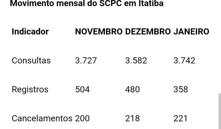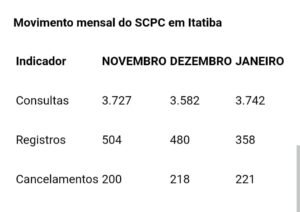 Foi divulgado hoje (14/02) o balanço do Serviço Central de Proteção ao Crédito (SCPC) da Associação Industrial e Comercial de Itatiba (Aicita) referente ao mês de janeiro. Conforme os números, o ano de 2022 foi iniciado com ótimos resultados deste retrato da economia local.