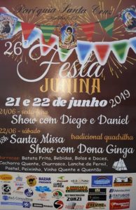 A deliciosa quermesse da Paróquia Santa Cruz será nos dias 21/06 – sexta-feira e sábado 22/06, com início às 19h e no sábado haverá a Santa Missa às 18h , logo em seguida a festa.
