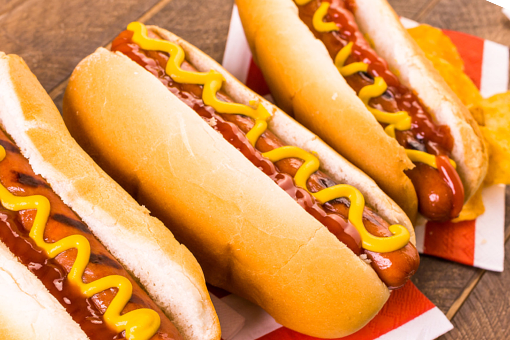 Barracas de batata frita, bolo, doces, cachorro quente, churrasco, lanche de pernil, pastel, peixinho, vinho quente e quentão.