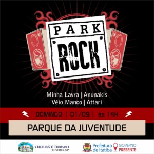 A 2ª edição do “Park Rock” acontecerá no primeiro domingo do mês de setembro, dia 01. Esta iniciativa integra o Projeto “Domingo no Parque”, idealizado pela Secretaria de Cultura e Turismo, que tem o objetivo de movimentar, através de parceiros, o cenário musical e cultural da cidade e abrir espaço para novos artistas.