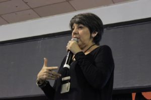 Irreverente e com muito bom-humor, a palestrante da primeira noite, Lourdes Atié, fez as reflexões sobre o envolvimento da sociedade no processo de educação escolar. “Educação a gente muda com o comprometimento de toda a cidade. Então não é um problema, e os problemas que acontecem não são apenas da escola. Está na hora da sociedade civil ser parceira da escola, ir e fazer junto, pra que a escola possa realizar aquilo que cabe a ela”, reforçou Lourdes que é socióloga e atualmente é professora do Instituto Singularidades e trabalha em várias frentes como assessora pedagógica.