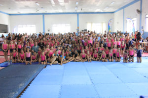 Na sequência, foi a vez das turmas de Pré Treinamento, Pré Mirim e Infantil realizarem saltos variados sobre a Mesa com mini trampolim. Em seguida, as alunas iniciantes nível I, iniciantes nível II e treinamento realizaram saltos grupados e afastados na caixa no Salto sobre o Plinto com 5 Gavetas com Jump.