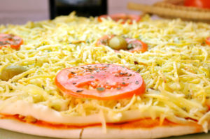 Os sabores das pizzas a serem retiradas no local são mussarela com alho, calabresa, portuguesa e frango com catupiry.