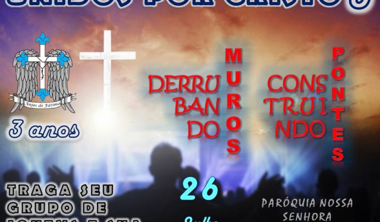 A Pastoral da Juventude Anjos de Fátima comemora 3 anos e convida toda a população itatibense a participar da celebração Unidos por Cristo 3, nesta sexta-feira, dia 26, das 19h às 23h, na Paróquia Nossa Senhora do Rosário de Fátima – no bairro Alto de Fátima, Itatiba.