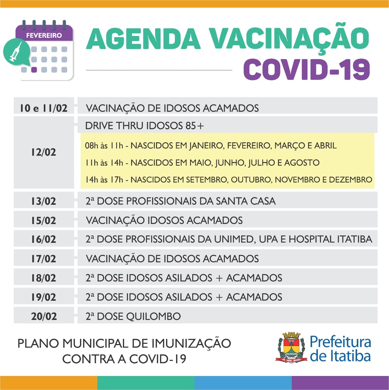Agenda Vacinação Covid-19 fevereiro 9, 2021fevereiro 12, 2021admin Atenção à agenda da vacinação contra covid-19