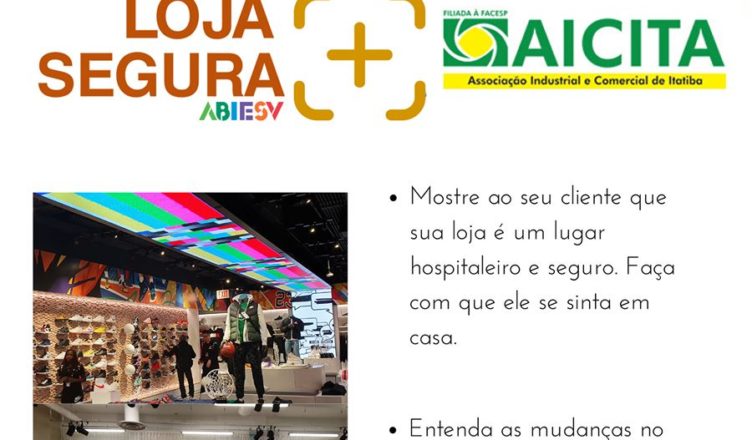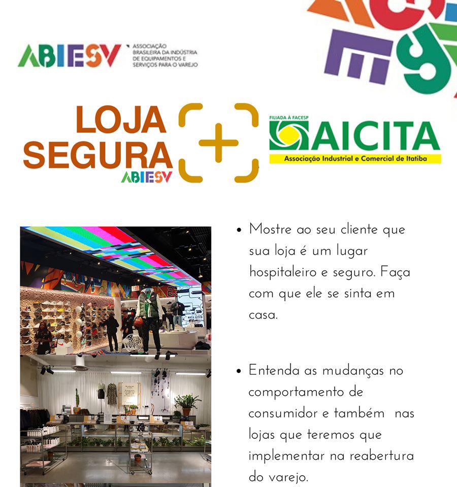 A Associação Industrial e Comercial de Itatiba (Aicita), em parceria com a Associação Brasileira da Indústria de Equipamentos e Serviços para o Varejo (Abiesv), disponibiliza para associados e empresários de todo o município, a cartilha intitulada Loja+Segura, oferecendo informações úteis sobre mudanças de comportamento do consumidor e ações necessárias para o funcionamento do varejo após a chegada da pandemia da Covid-19, doença causada pelo coronavírus.
