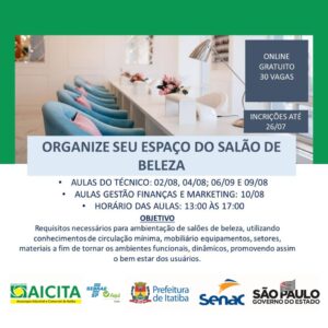 Os três têm inscrições também realizadas de forma virtual e que podem ser realizadas até dia 26 de julho. O link pode ser encontrado no site da Aicita, bastando clicar na imagem do curso, e na bio do Instagram @aicitaitatiba. O início das aulas se dará em 2 de agosto.