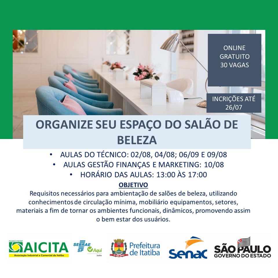 Outras informações diretamente com o Sebrae Aqui Itatiba, pelo 4524-3334 Ramal 233 ou pelo WhatsApp 96349-8140. As atividades são conjunto de parcerias entre Aicita, Sebrae Aqui Itatiba, Prefeitura de Itatiba, Senac e Governo do Estado de São Paulo.
