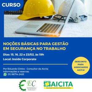 Quem quiser ir além na capacitação deste tema encontrará também neste mês o Curso Noções Básicas para Gestão em Segurança no Trabalho. São 12h de treinamento, onde o participante verá: o que o empregador precisa saber sobre GSST; os benefícios da GSST; como evitar custos e despesas desnecessárias relacionadas a GSST; legislação do tema; a Segurança no Trabalho dentro do e- Social; documentos obrigatórios aos empregadores e capacitações e treinamentos obrigatórios perante a lei.