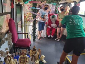 Para tanto, o tema do projeto é A Magia do Natal perto de você. Isso porque até dia 24 de dezembro, diariamente, o Ônibus do Papai Noel estará estacionado em algum ponto da cidade (confira a programação) com a presença do Bom Velhinho conversando com as crianças, distribuindo balas, recebendo cartinhas, fazendo fotos com todos que passam dentro do ônibus sem bancos e especialmente decorado para este momento.