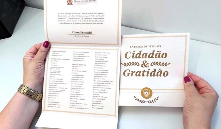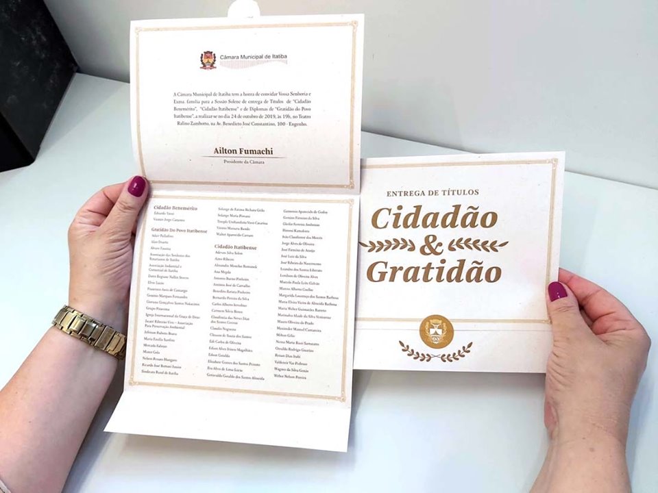 O diploma de Gratidão do Povo Itatibense homenageia àqueles que, por sua atuação, tenham verdadeiramente proporcionado maior desenvolvimento à cidade. A Aicita será homenageada no mesmo mês em que completou 50 anos de fundação, sendo este mais um marco no Jubileu de Ouro da entidade.