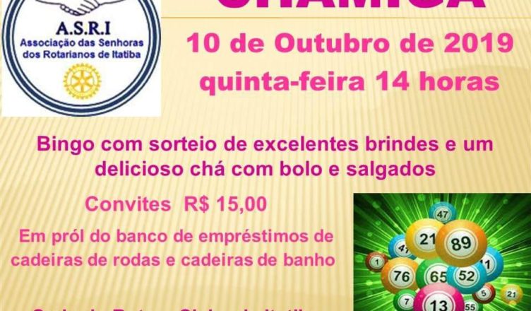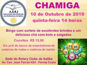 Promovido pela ASRI (Associação das Senhoras dos Rotarianos de Itatiba), será no dia 10 de Outubro de 2019, à partir das 14h, na sede do Rotary.
