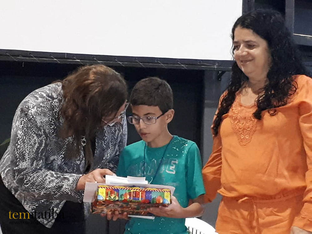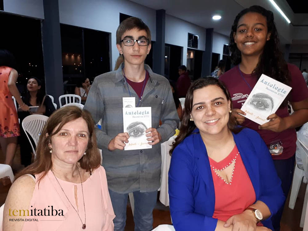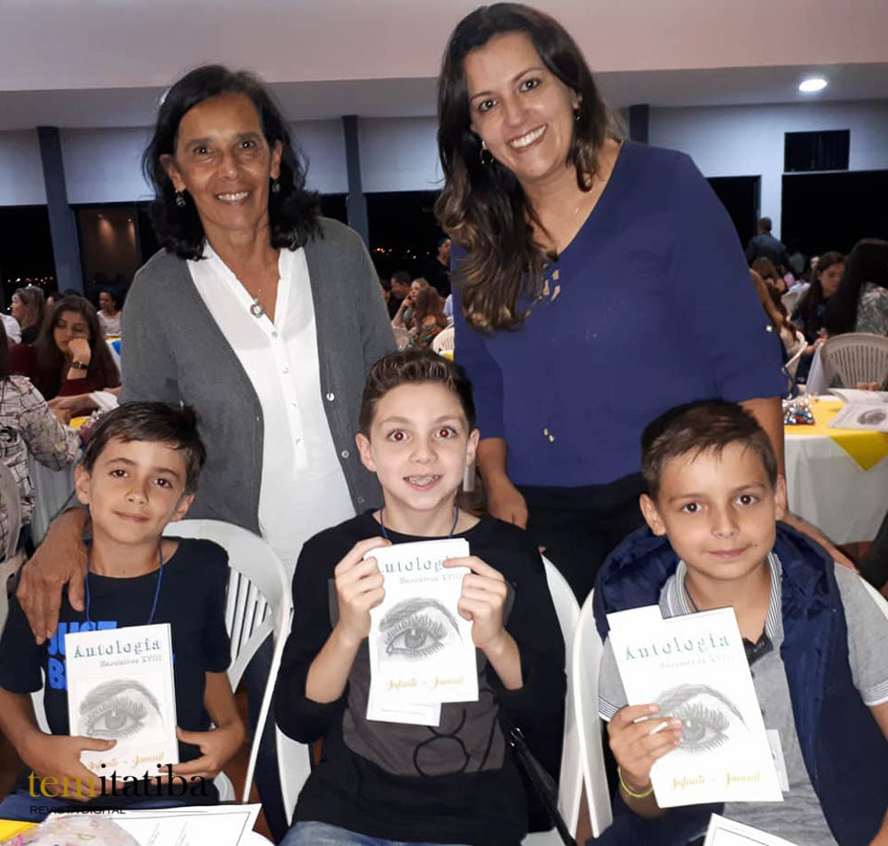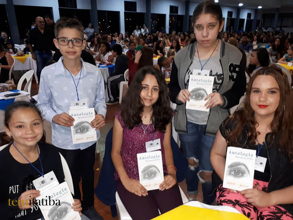 A forte chuva que caiu na noite da última sexta-feira,26, não atrapalhou o aguardado momento cheio de emoção dos alunos e familiares da Rede Pública e Particular de Ensino de Itatiba, que esperavam ansiosamente, para verem suas obras publicadas.Com realização da AEPTI – Associação dos Escritores, Poetas e Trovadores de Itatiba, Prefeitura Municipal de Itatiba e Universidade São Francisco, cerca de 700 convidados, entre alunos, familiares e educadores, participaram do lançamento do livro “Antologia Encontros XVIII Infanto-Juvenil”,no salão nobre do Itatiba Esporte Clube. Este é o 18º ano que alunos das escolas públicas e particulares de Itatiba participam do concurso literário juvenil, sendo que o concurso de desenho infanto-juvenil está em sua 13º edição.