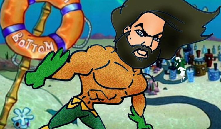 Mas o que eu mais gostei foi da grande quantidade de águas marinhas que aparecem no filme, flutuando pra lá e pra cá…. com a cor da DC elas ficam meio roxinhas e se parecem muito com aquelas águas vivas dos desenhos do Bob Esponja. Comecei a viajar na maionese de que aquilo era homenagem ao criador do Boib Esponja, um dos desenhos mais criativos que existem, cujo papai, Stephen Hillenburg, morreu pouco depois do Stan Lee.
