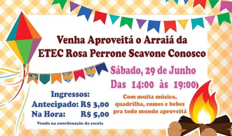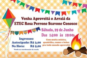 Será no sábado, dia 29, das 14h às 19h , com comidas típicas, música e quadrilha. Participe com sua família!