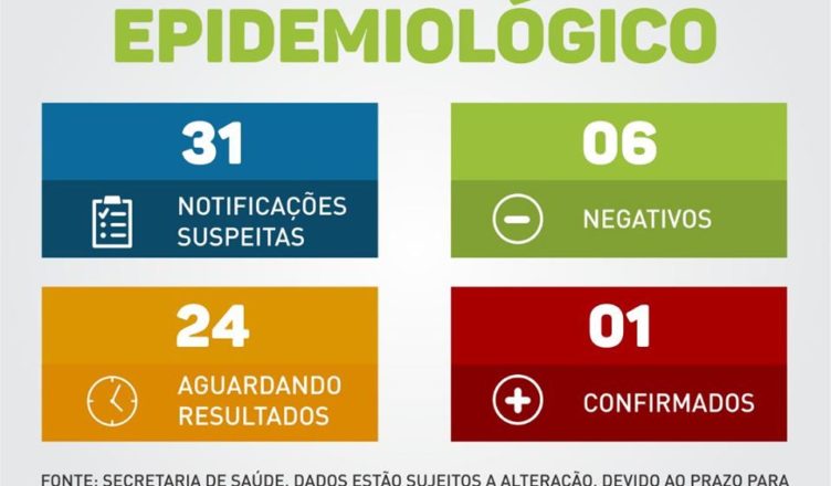 A Secretaria Municipal de Saúde informa que nesta segunda-feira (30) uma coleta foi realizada para análise de covid-19. Trata-se de um homem, de 45 anos, que deu entrada na UPA e foi transferido para a Santa Casa, onde está internado na enfermaria, isolado e estável, com síndrome gripal grave.