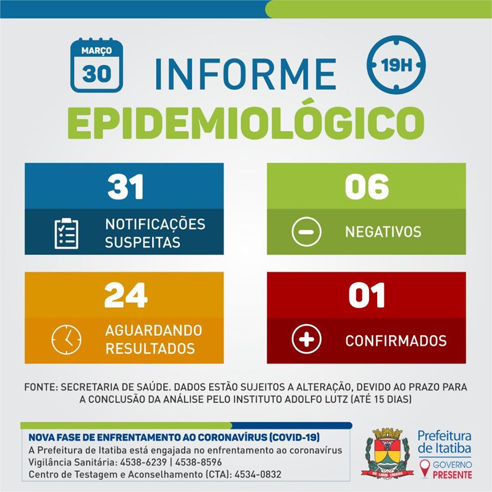 Boletim Coronavírus Itatba – Segunda-feira – 30 de março de 2020 – 19h