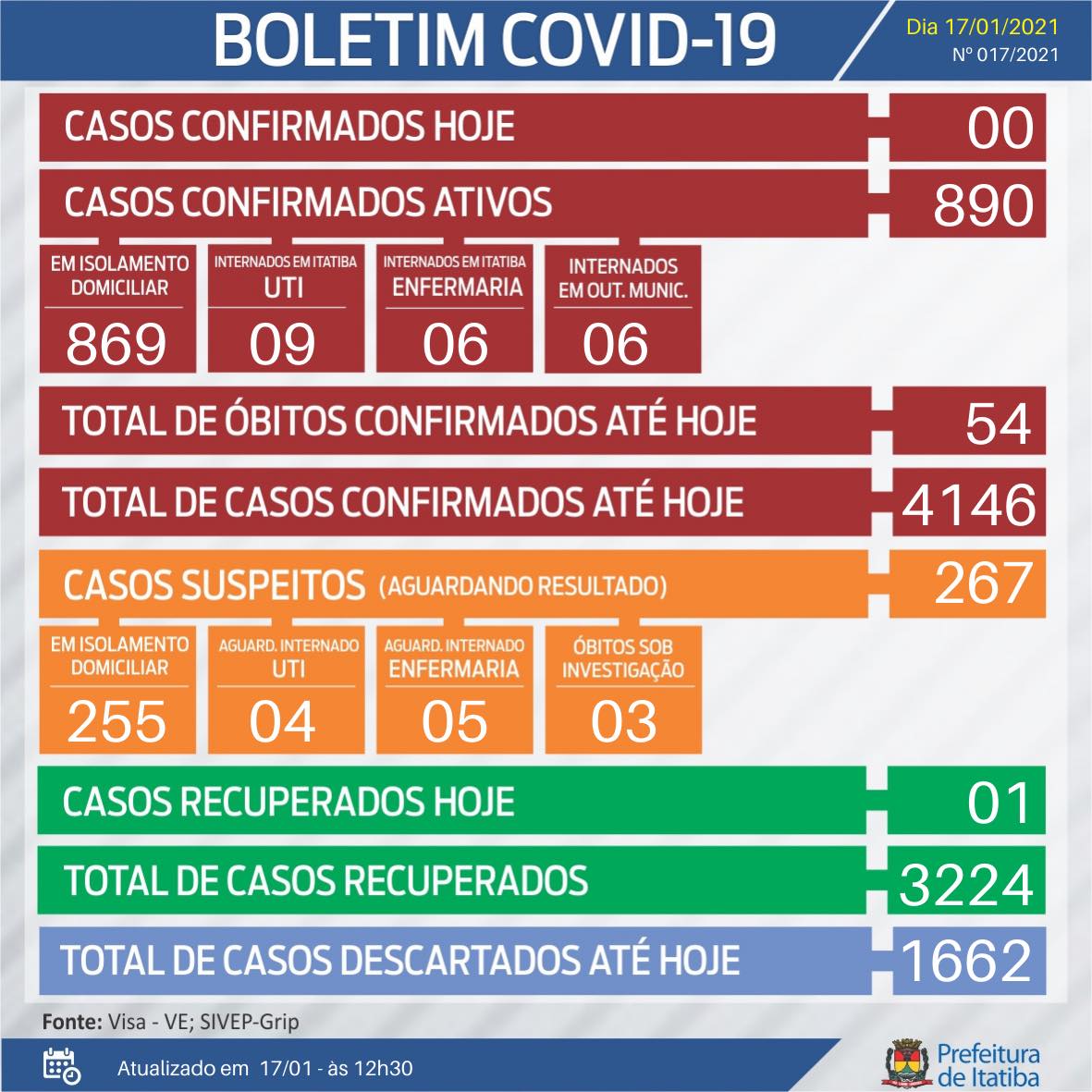 Demais dados seguem estáveis, inclusive a ocupação da UTI, segundo boletim deste domingo. A partir de amanhã, dia 18 de janeiro, 6 novos leitos UTI serão disponibilizados no município.