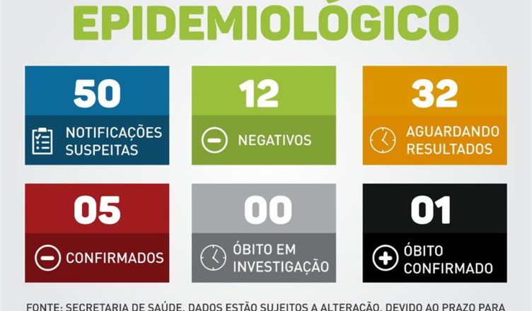 A Secretaria de Saúde informa que nesta quarta-feira (08) uma coleta foi realizada para envio ao Instituto Adolfo Lutz. Trata-se de uma mulher de 43 anos, que não precisou de internação na Santa Casa. Está em casa, em isolamento doméstico.