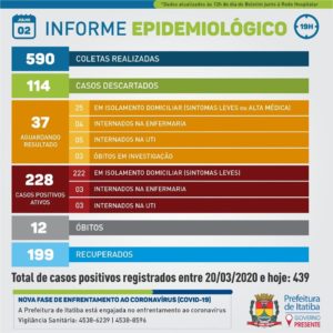 A Secretaria de Saúde acrescentou nesta quinta (02/jul) mais 21 casos ao quadro de acompanhamento, via testes rápidos da Prefeitura, laboratórios privados e UPA. Todos estão em casa.