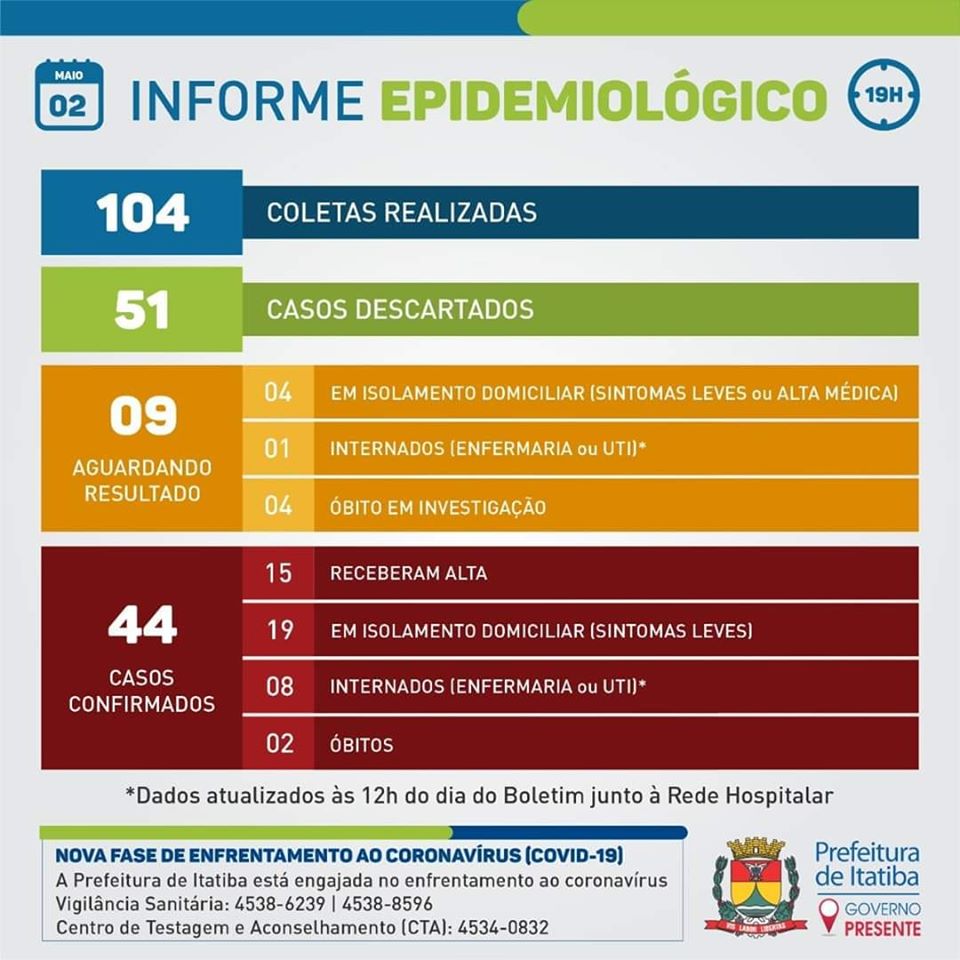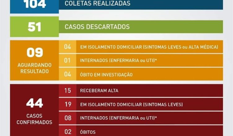 Segundo informação obtida pelo Dr. Carlos Lemes, são 03 os internados na UTI da Santa Casa para covid-19 (dois confirmados e um suspeito). Na ala de enfermaria, dos 21 leitos já reservados, 05 estão ocupados. Há ainda o caso de um homem, positivo, que esteve em UTI em Sorocaba e agora está em enfermaria em Jundiaí.