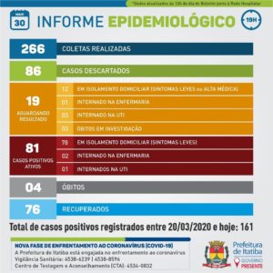 Boletim Coronavírus Itatiba – Sábado – 30/05/2020