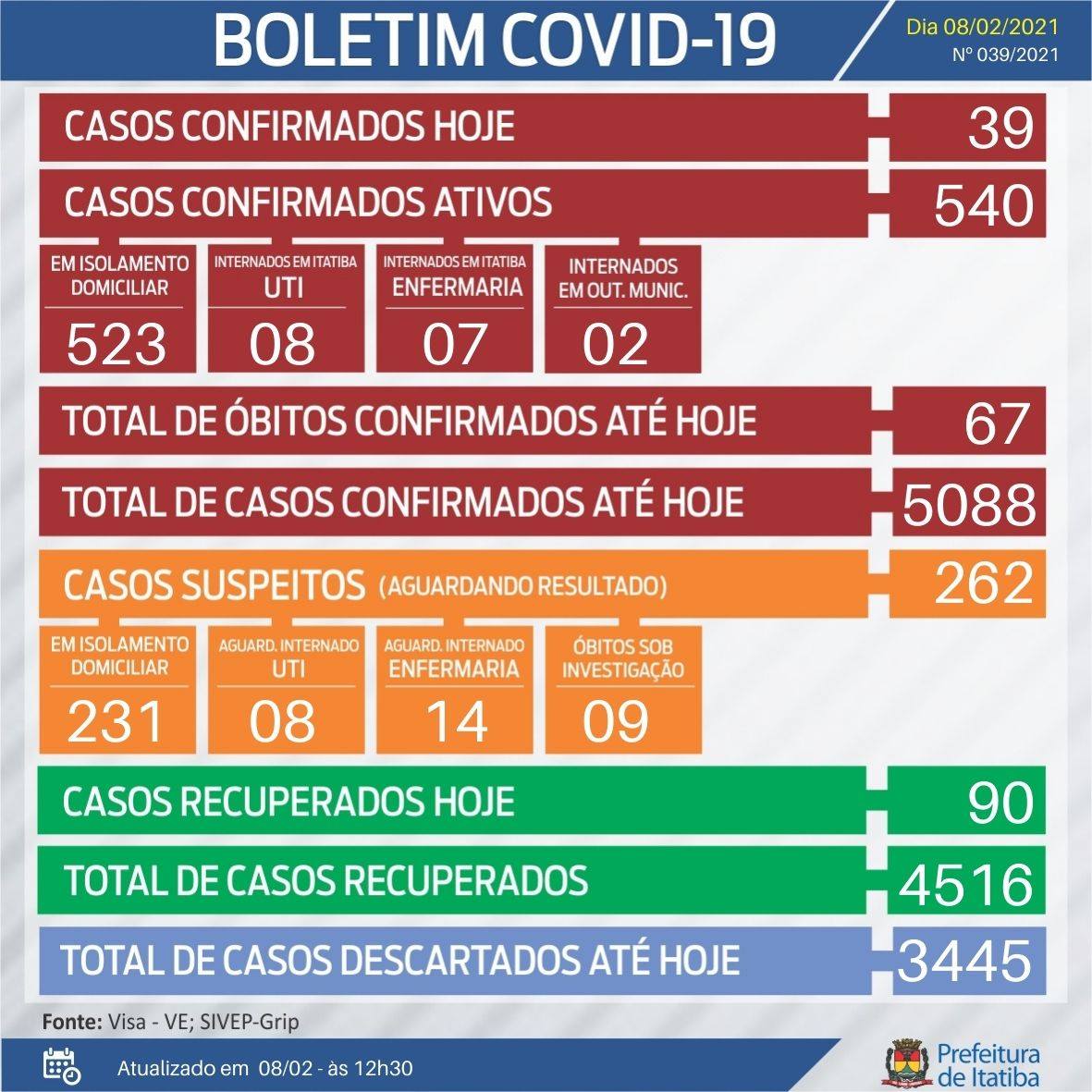 Boletim Coronavírus Itatiba – Segunda-feira – 08/02/2021