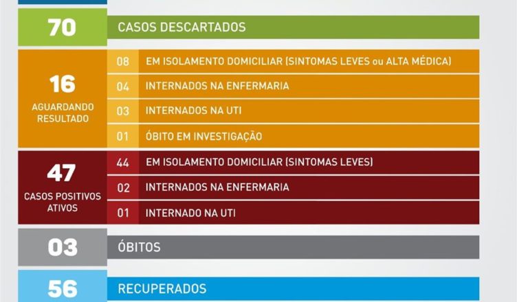 O Instituto também enviou sete resultados NEGATIVOS – um deles da criança de 2 anos de idade que, no entanto, ainda permanece na Enfermaria da Santa Casa (ela passa bem). Três pessoas que estavam internadas (e que ainda aguardam resultado) foram liberadas do hospital e passam a integrar o quadro de isolados em casa.