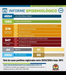 BOLETIM CORONAVÍRUS ITATIBA: TERÇA, 29/12