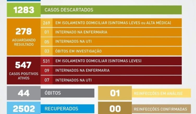 A Secretaria de Saúde informa que nesta terça (29/dez) 51 novos casos foram reportados para a Vigilância Sanitária via testes privados. Cinco pessoas já estavam internadas e as demais estão em casa.