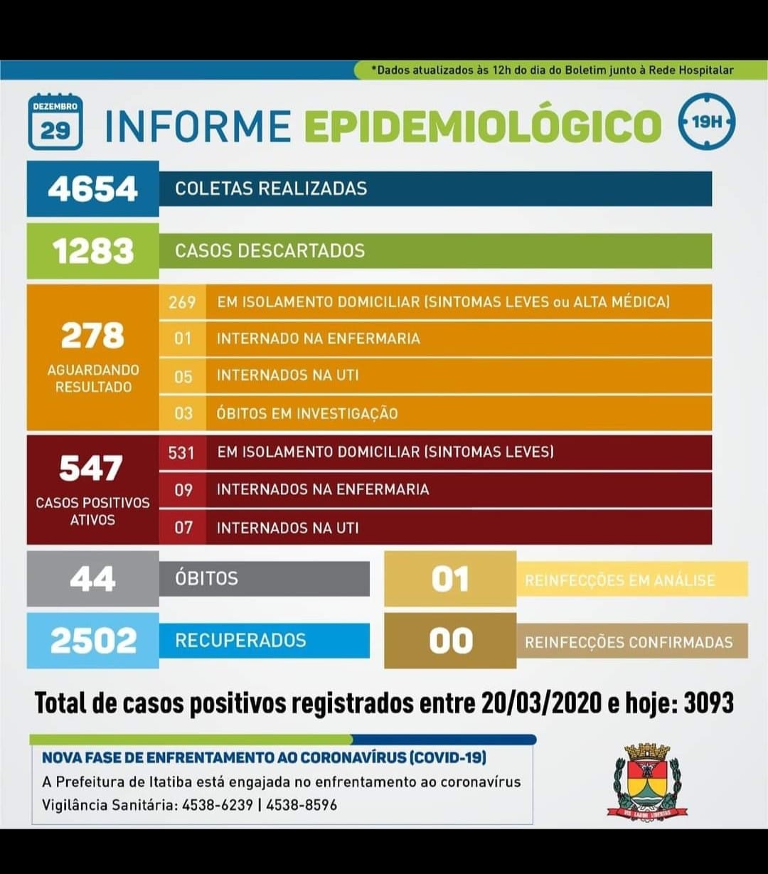 BOLETIM CORONAVÍRUS ITATIBA: TERÇA, 29/12