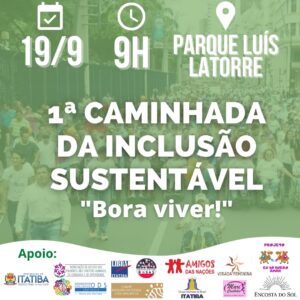 Primeira caminhada inclusiva sustentável de muitas que o comitê PCD ( pessoas com deficiência ) do Grupo Mulheres do Brasil-Núcleo Itatiba , grupo Limpa Brasil, MNODSSP-Itatiba vai fazer. A primeira sempre é especial. Será enste domingo, dia 19, às 9h no Parque Luis Latorre.