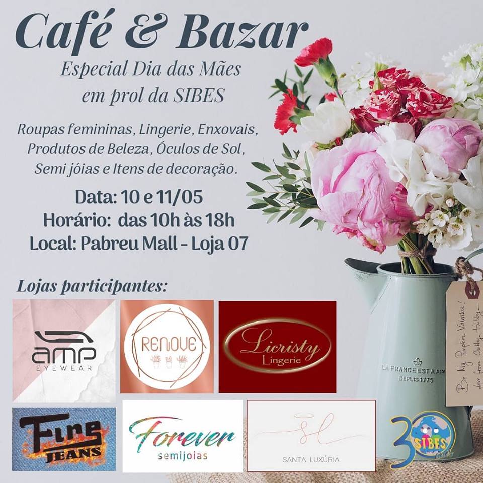 Esperamos você dias 10 e 11/05 no nosso Café & Bazar, será lá no Pabreu Mall, das 10h às 18h.