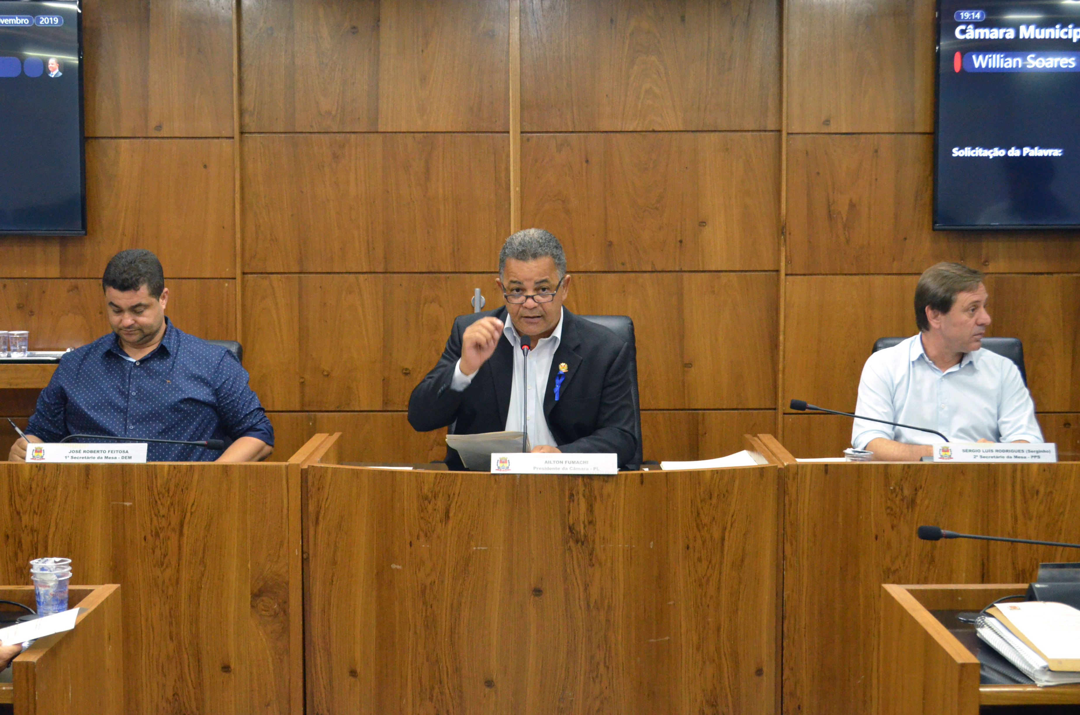 O PR 18/2019 concede licença ao vereador Sidney Ferreira (PSDB) pelo período de 12 dias, a partir de 18 de novembro, para tratamento de saúde. Já o PR 19/2019 concede licença a Thomás Capeletto (PSDB), por 10 dias, a partir de hoje, por motivos pessoais. Em seus lugares, assumiram os suplentes Rui Fattori (PSDB) e Alessandro Dinis, respectivamente.