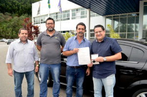 A Câmara realizou, na tarde desta quarta-feira (15), a doação de um veículo oficial à Prefeitura. Segundo o presidente Ailton Fumachi (PR), o carro deve ser utilizado pela Secretaria de Educação. O titular da pasta, Anderson Sanfins, recebeu o termo de doação. “Como o veículo – um Vectra -, já tem 10 anos e precisa de manutenções, a Câmara comprará, em breve, outro carro para atender às necessidades dos vereadores. A doação para o Executivo será para a realização de viagens e outros serviços administrativos”, disse o presidente.